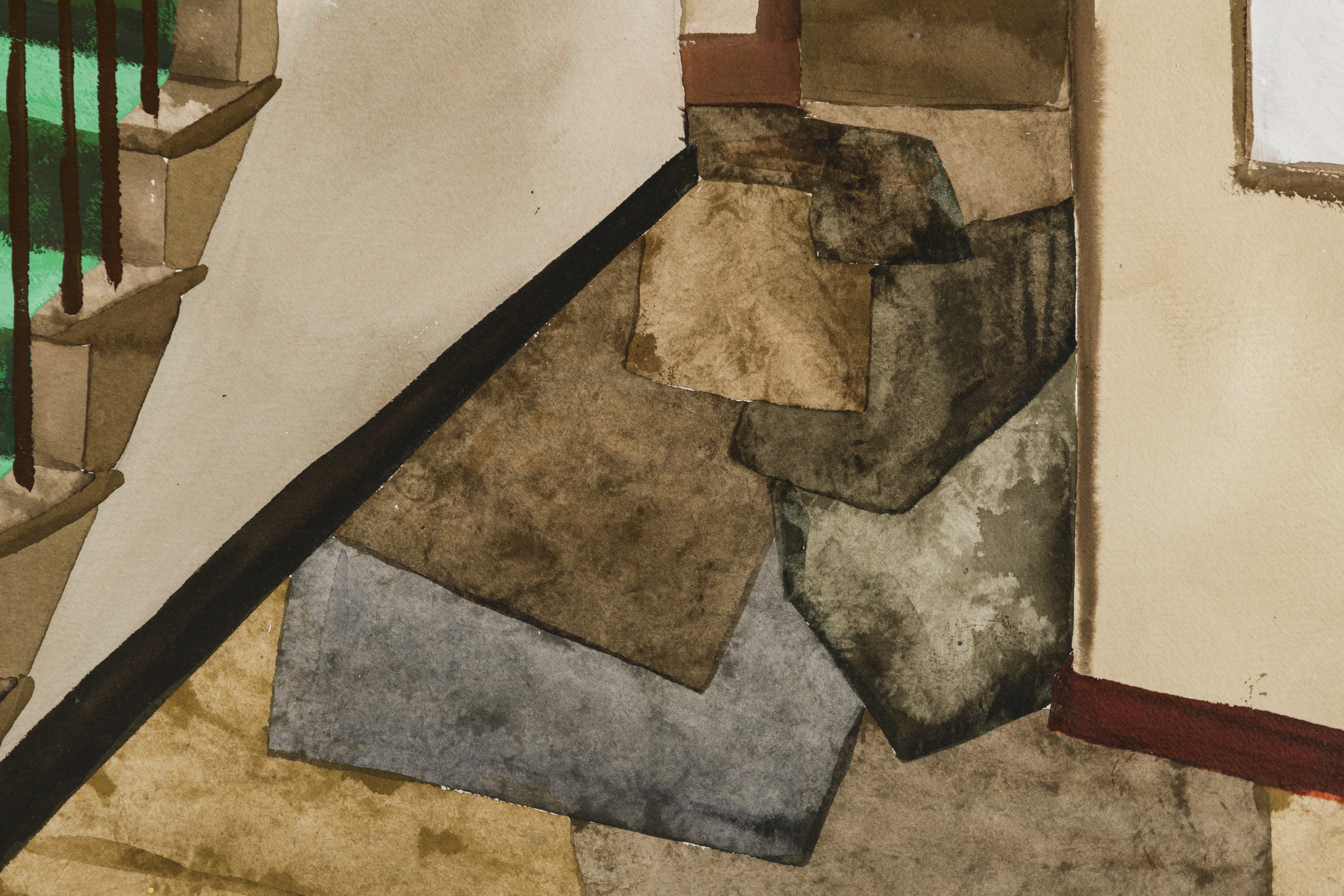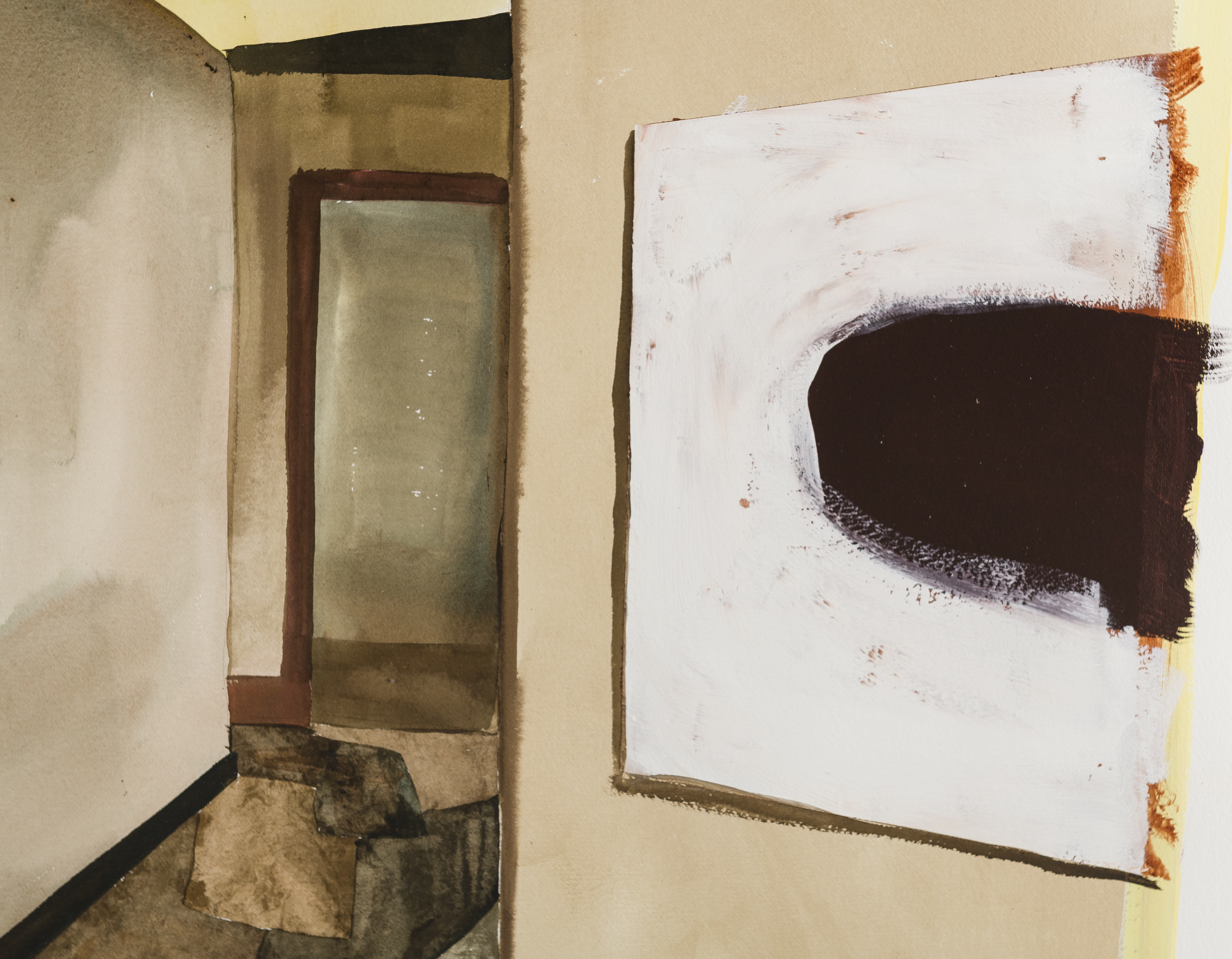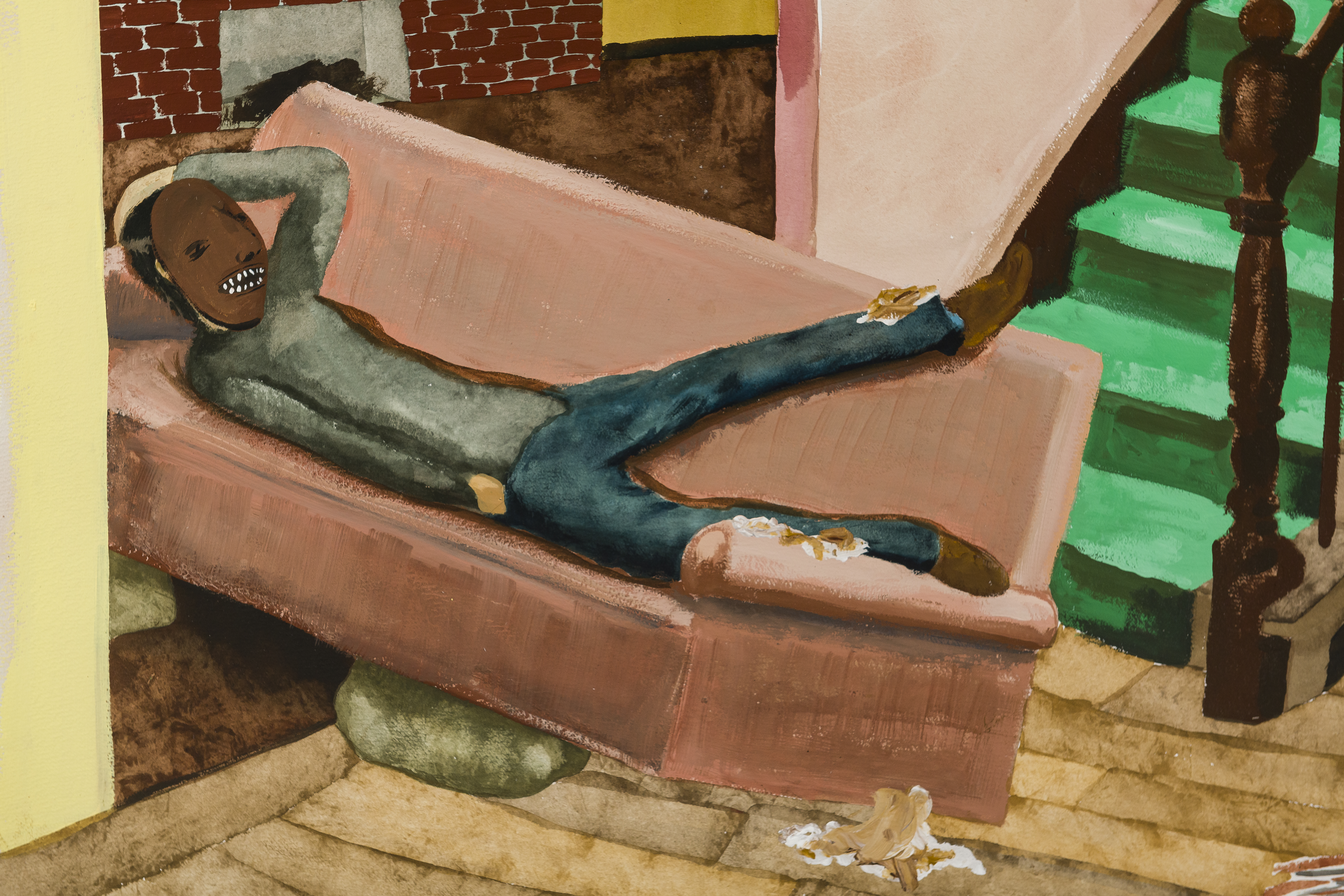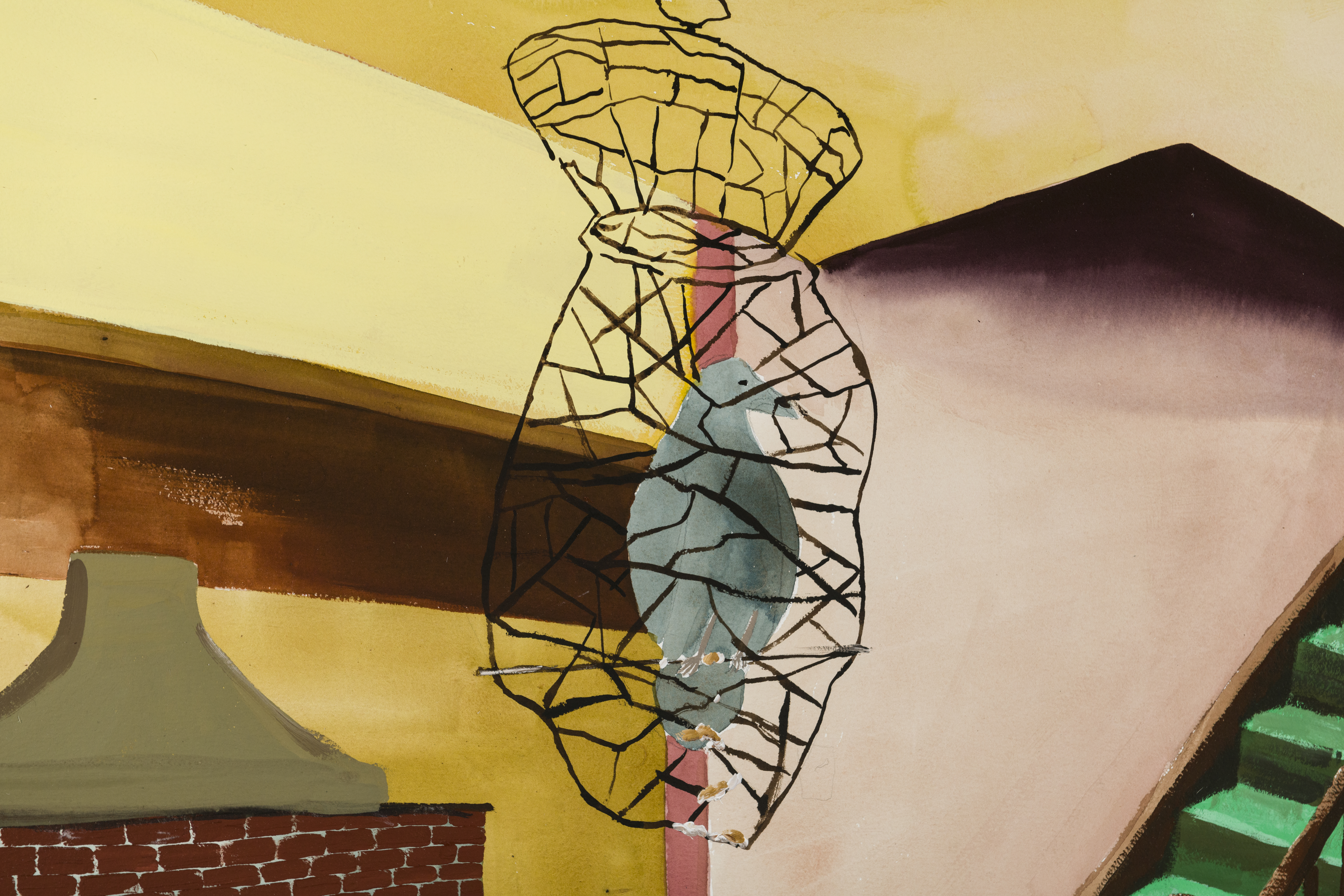Joseph Tisiga (Kaska Dena), An apocalyptic scenario haunted by the imagined feats of ancestors, about which I can only speculate, 2022. Watercolor on paper, 40 × 55 in. Forge Project Collection, traditional lands of the Moh-He-Con-Nuck.