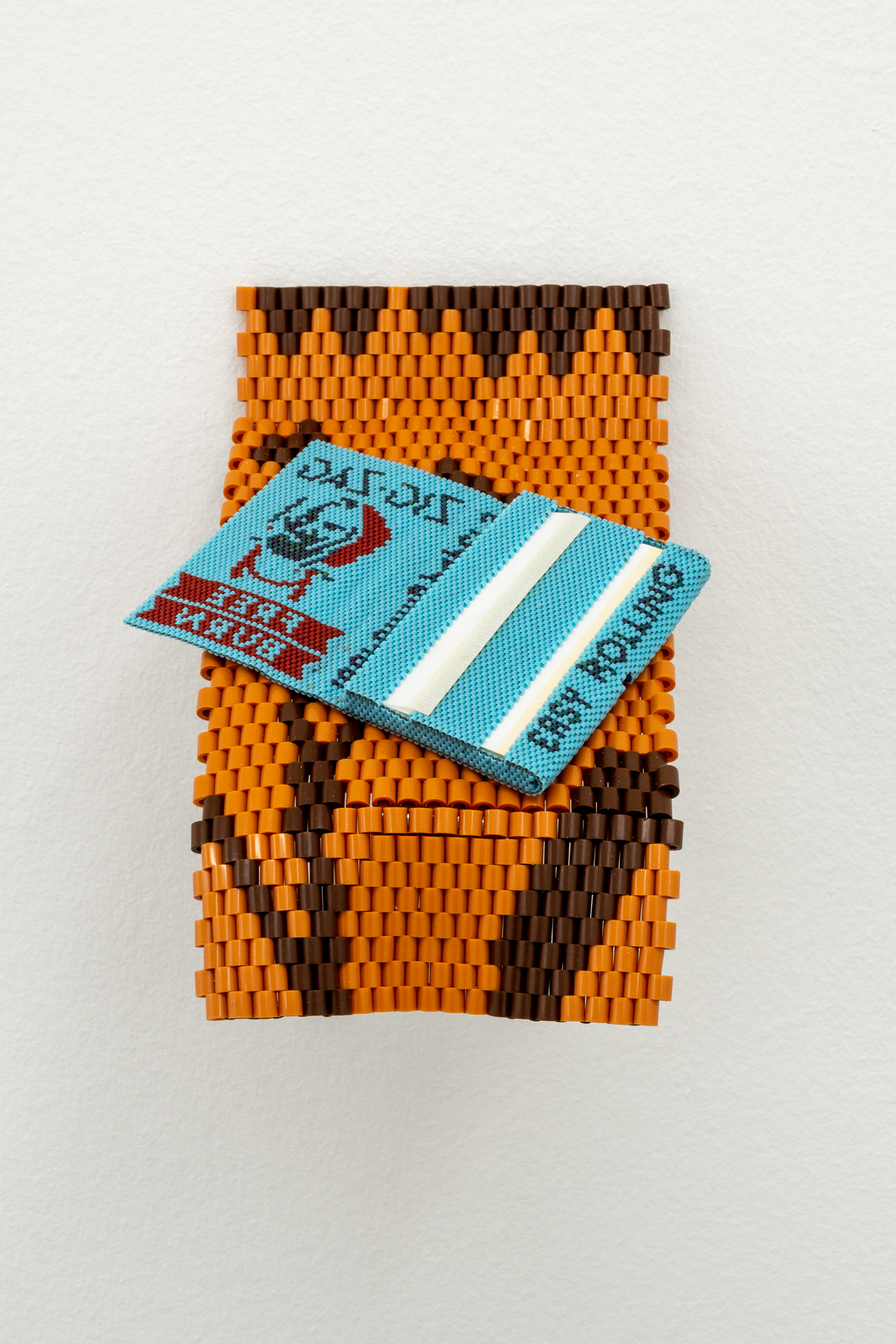 Nico Williams (Anishinaabe), Free Burn, 2021. 15/0 glass beads, thread, 7 × 4 × 0 1/2 in. Forge Project Collection, traditional lands of the Moh-He-Con-Nuck.
