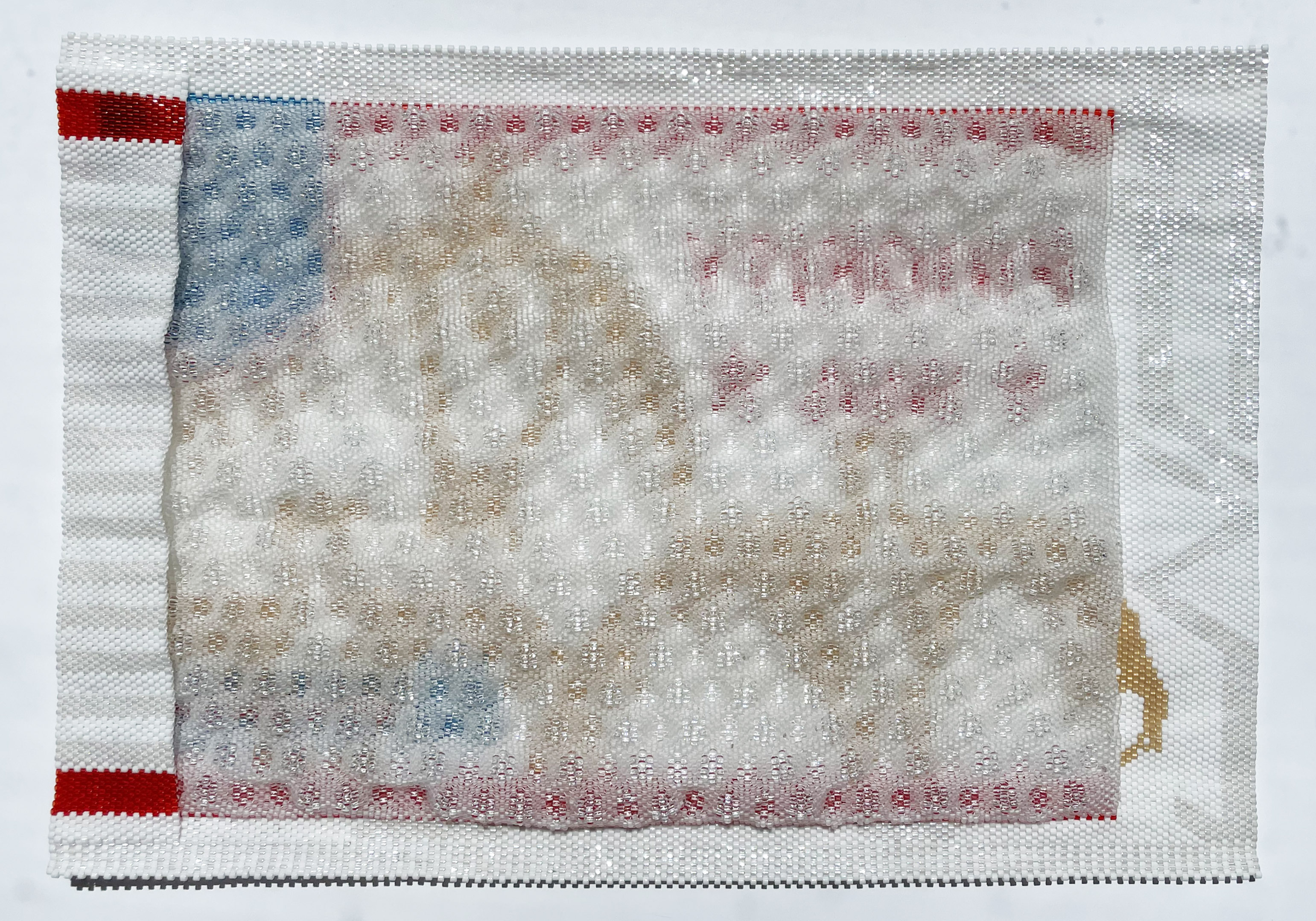 Nico Williams (Anishinaabe), Animikii, messengers, 2022. Glass beads, 9 1/8 × 13 3/8 × 0 3/8 in. (Mounted: 20 1/2 × 18 1/2 × 6 1/2 in.). Forge Project Collection, traditional lands of the Moh-He-Con-Nuck.