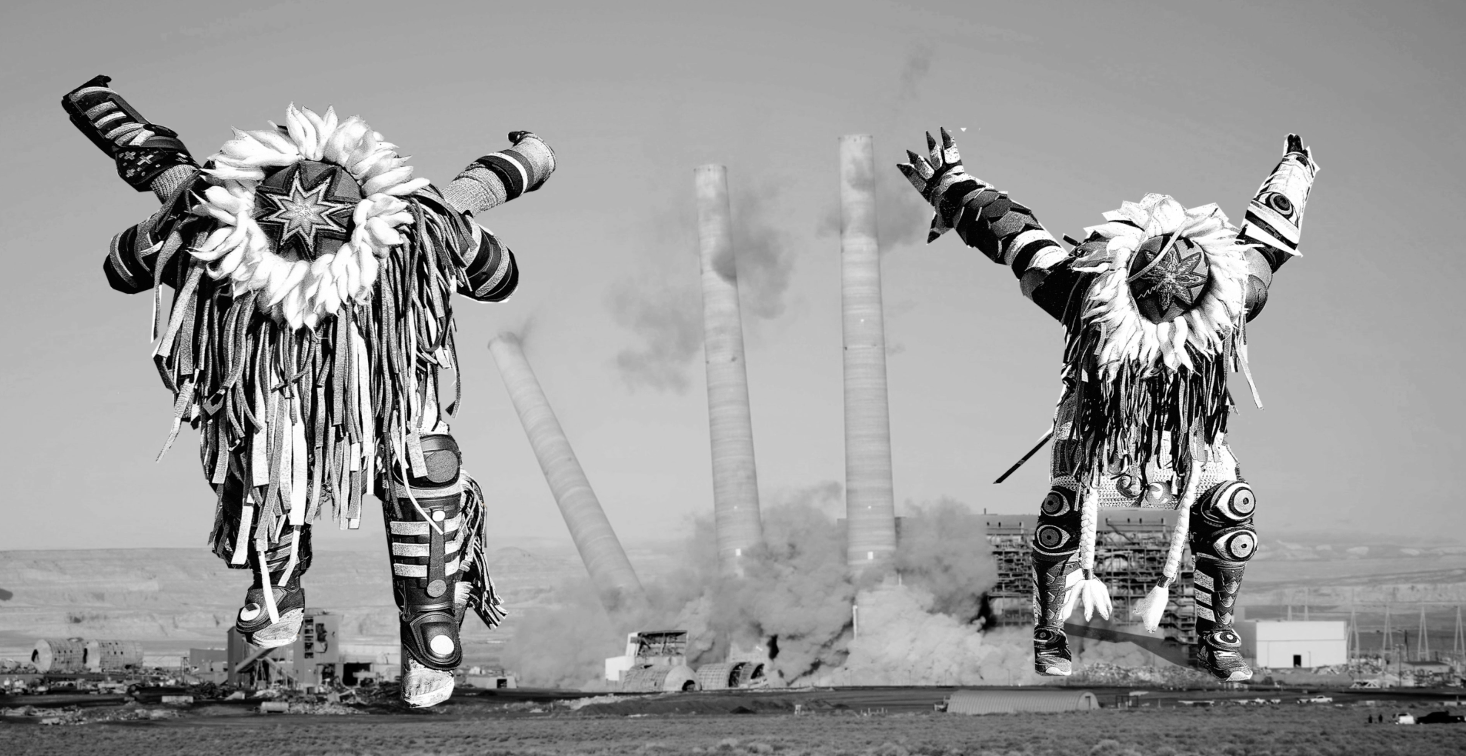 Cannupa Hanska Luger (Mandan, Hidatsa, Arikara, Lakota), The One Who Checks & The One Who Balances (Return of the Warrior Twins), 2021. Single channel video, Forge Project Collection, traditional lands of the Moh-He-Con-Nuck.