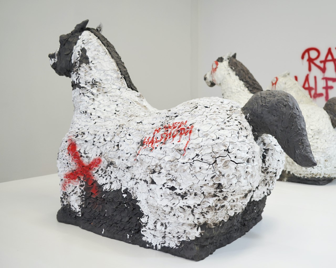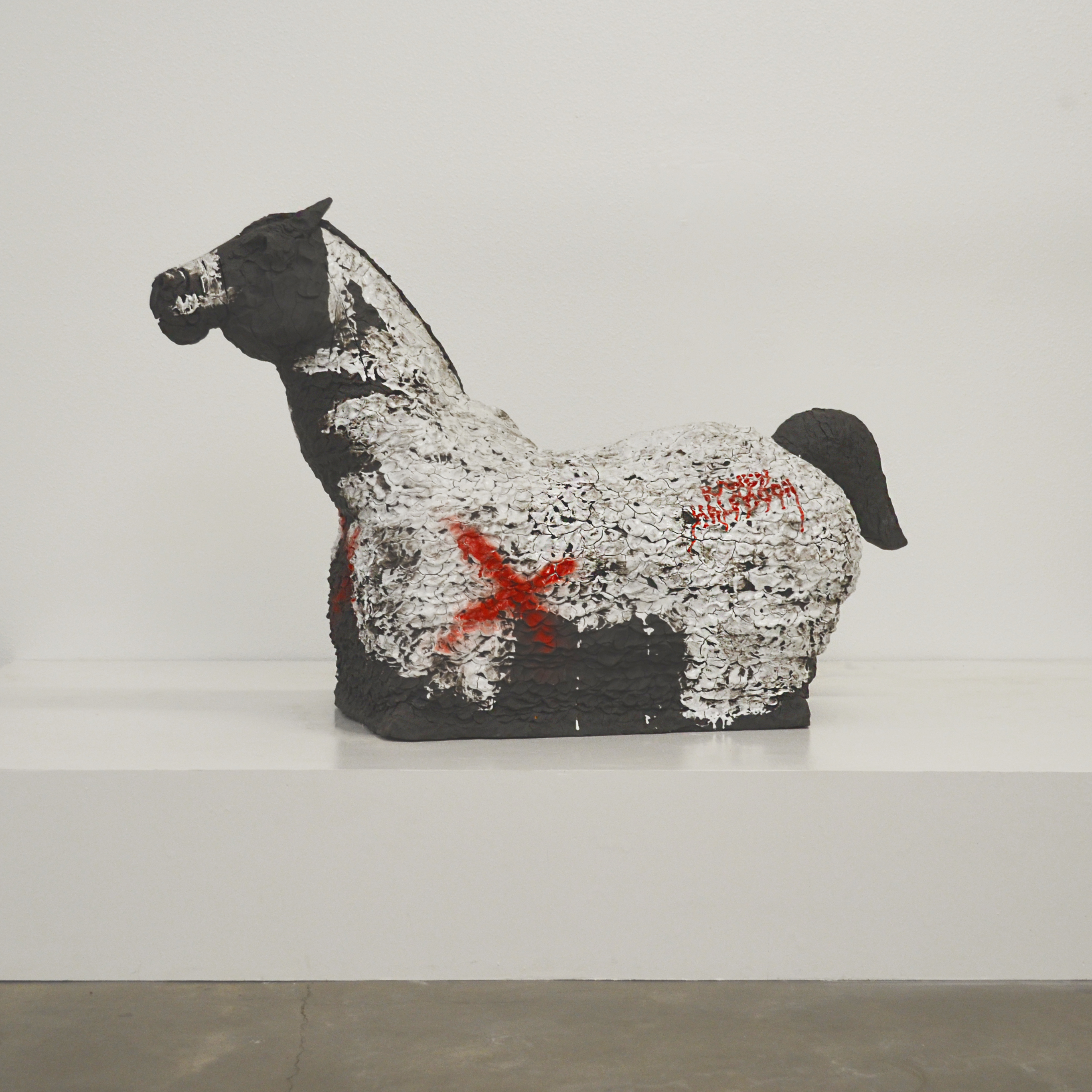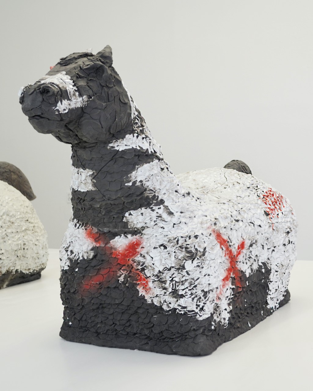 Raven Halfmoon (Caddo), Hadeh’coosha, 2021. Stoneware and glaze, 35 × 58 × 22 in. Forge Project Collection, traditional lands of the Moh-He-Con-Nuck.